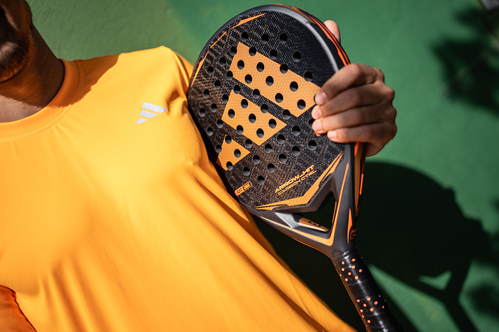 The Adidas Arrow Hit Carbon Ctrl padel racket has a round headshape with a centred sweetspot. This increases power in attacking shots and suits an aggressive playing style at a pro level. Technologies include: