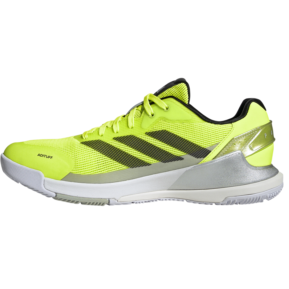 Stay agile on the court with the Crazyquick padel shoes from adidas, designed with a focus on performance and sustainability. These shoes feature a lightweight textile upper, providing breathability and support, while the grippy Adiwear outsole ensures excellent traction. The low-profile Lightstrike midsole allows for quick responses to every movement, and the Adituff toe protection means they can handle intense gameplay with ease.