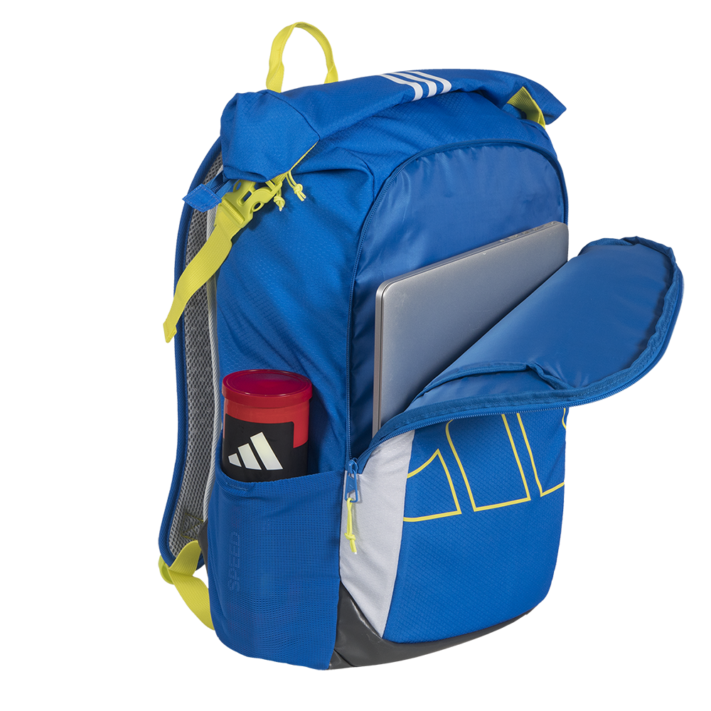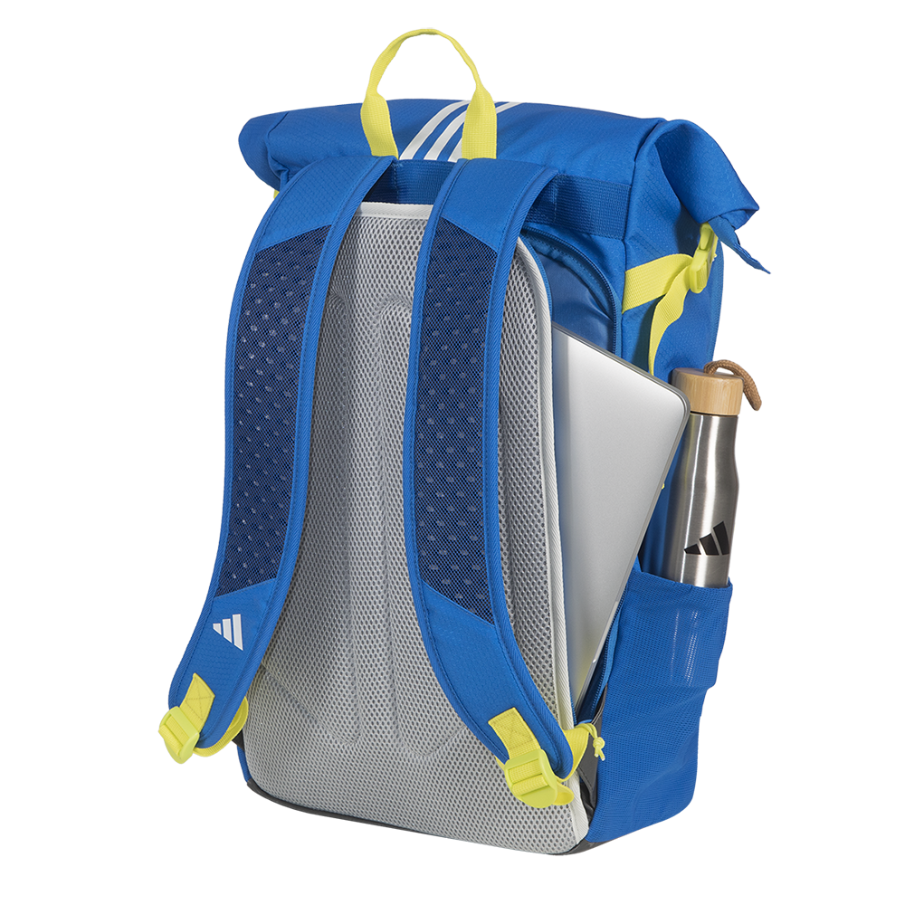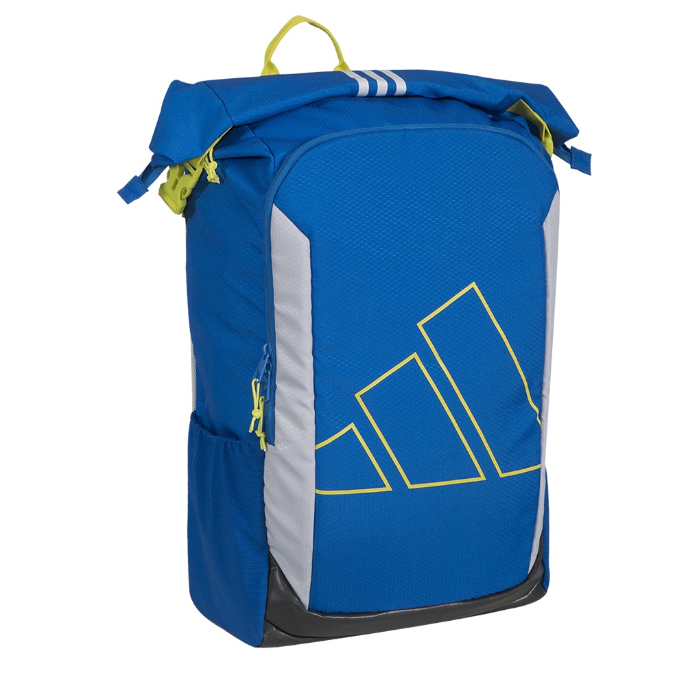 The Adidas Multigame 3.3 Backpack is ideal for those on the go. It features an adjustable main compartment with a rolltop opening, a reinforced bottom, padded pockets for personal items and a laptop, and two elastic mesh side pockets for drink bottles.
