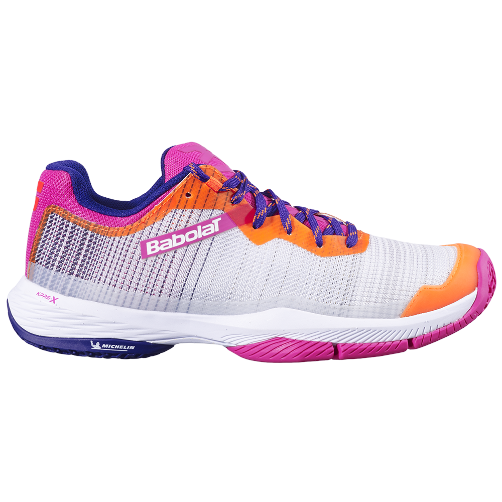 The Babolat Jet Ritma women’s padel shoes, designed to adapt to the shape of the female foot, are built to offer agility in every movement on the court.