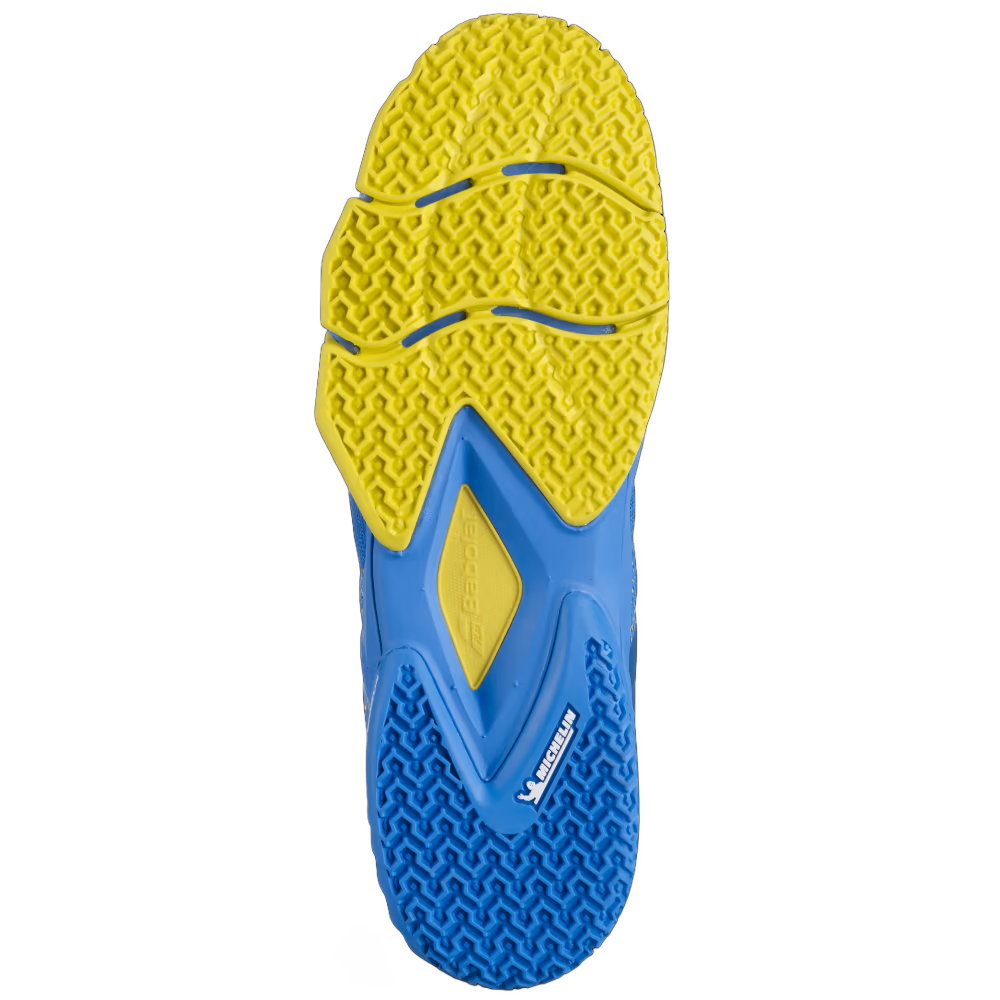 If you have to go after a ball that’s going off court or defend a difficult angle… feeling safe under all circumstances is vital and the Movea is THE shoe you need. It has lots of reinforcements for increased durability. With its built-in double lateral straps, it offers you peerless stability. Its knitted mesh on the forefoot is the best response to the need for comfort. Finally dare new shots.Because you want to feel safe whether on the defensive or offensive in the long rallies that are typical of Padel, we have given the Movea Power Straps which add the extra support necessary to feel solid in any stance.By combining Babolat’s expertise and Michelin’s know-how, we have developed the first sole dedicated to Padel playing: great flexibility from the two grooves on the forefoot, maximum dynamism from a new grip tread, perfectly suited to sand and synthetic grass, and in the most exposed area the increased thickness of the sole ensures a longer life cycle.Because observation of the game and its movements is our core expertise, we have designed the KPRS-X system to protect your heels from impact throughout matches and training sessions. Its EVA foam insert has been placed and sized to protect you effectively at each heel attack.