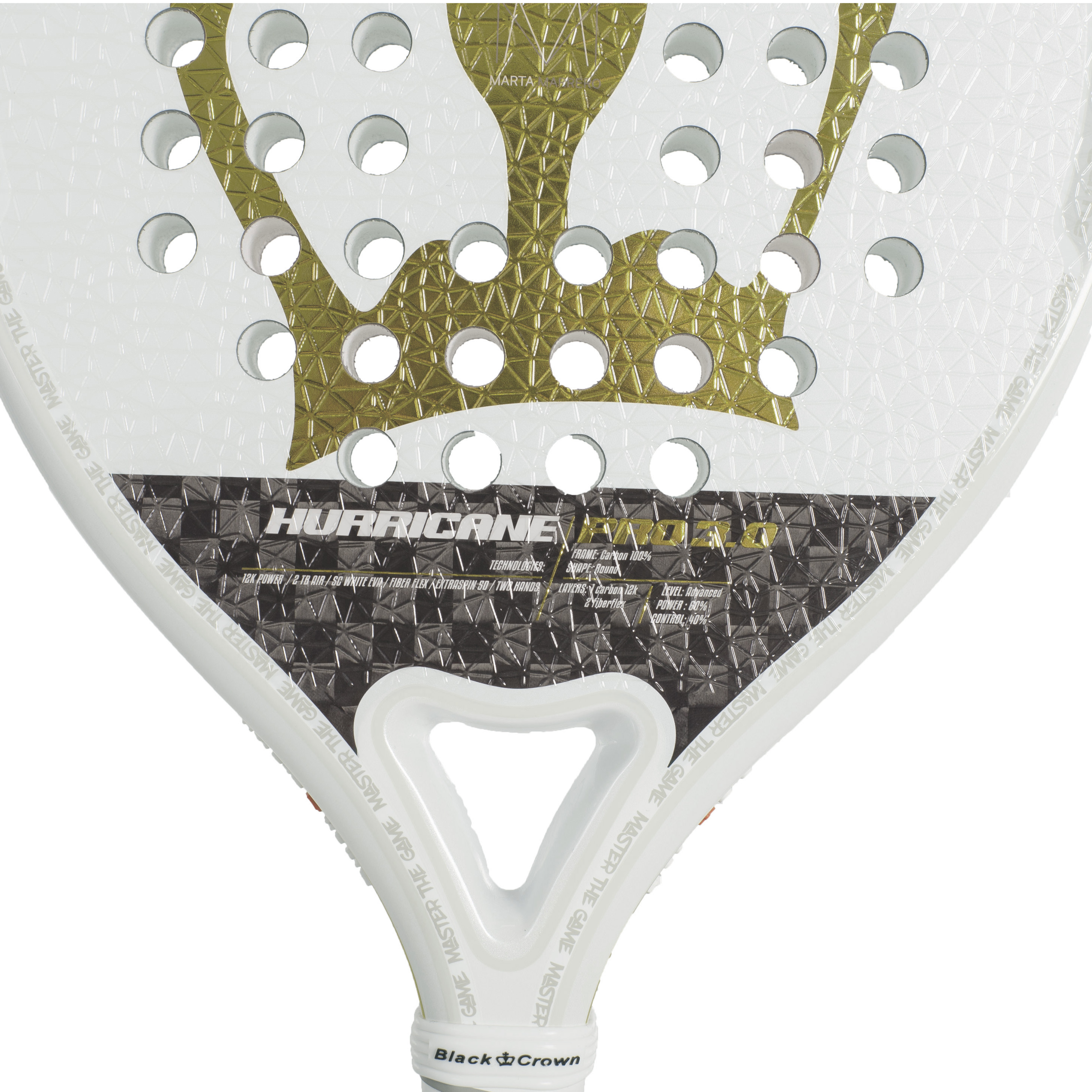 The Black Crown Hurricane Pro 3.0, chosen by professional player Marta Marrero, is crafted for advanced players seeking top-tier performance. With an elongated grip for two-handed backhands and 12k carbon on its faces, it delivers precision and power in every shot. Perfect for a demanding playing style, this racket offers an exceptional balance of control and power to elevate your game.