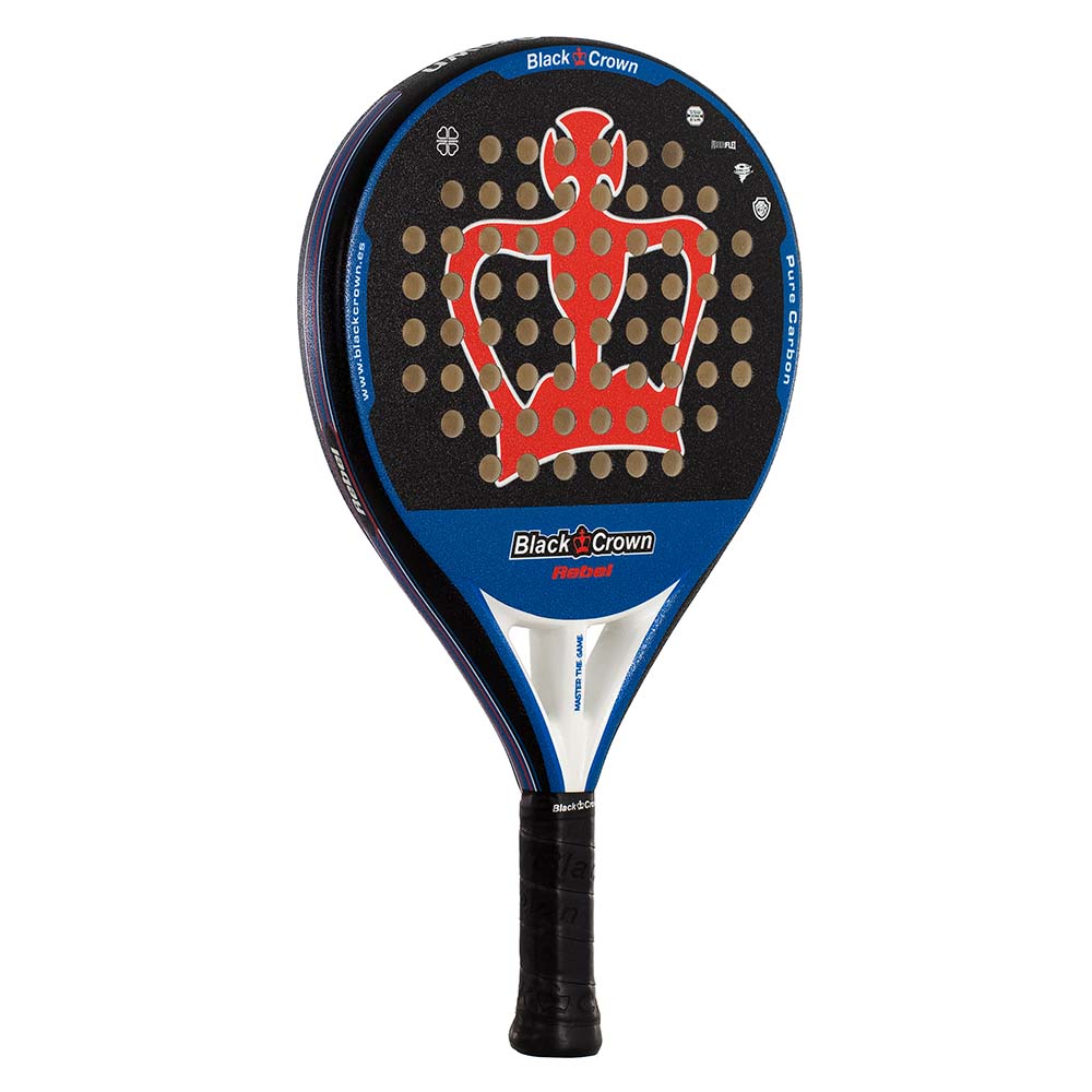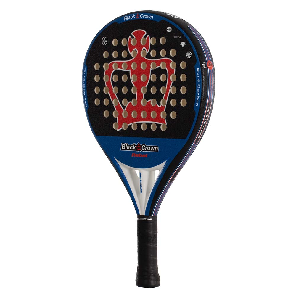 The Black Crown Rebel Padel Racket is an excellent, competitively priced padel racket designed for beginner and intermediate players. It features a round shape and low balance for superior manoeuvrability and ease of use, which helps players learn technique quickly and provides security in shots. Its construction includes a fibreglass surface for good ball delivery and a pleasant feel, an EVA Soft rubber core for a soft and controlled feel, and a double tubular fibreglass frame for durability. Overall, the Rebel offers a large sweet spot and comfortable feel, making it a balanced and forgiving choice ideal for schools, clubs, and players seeking comfortable progress.