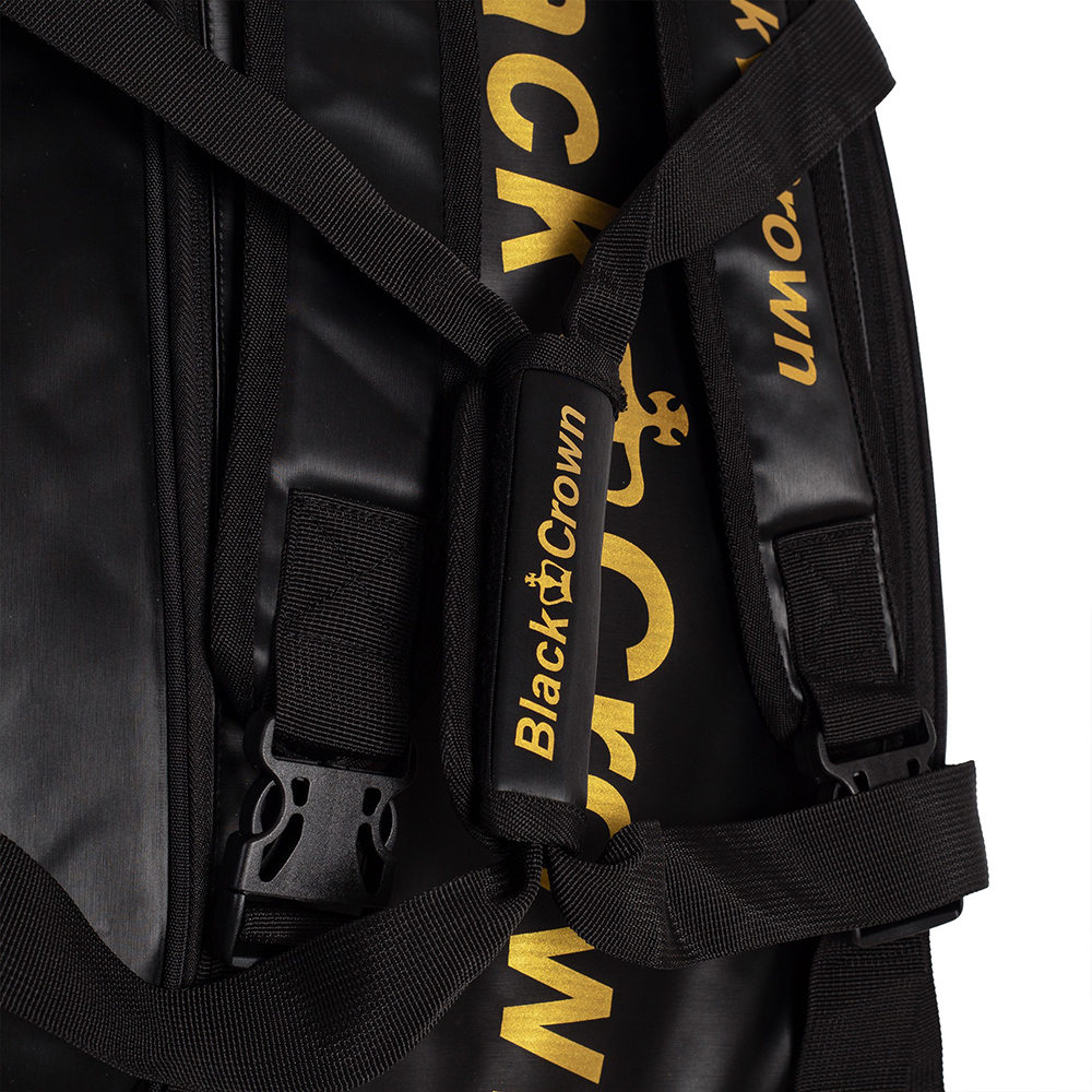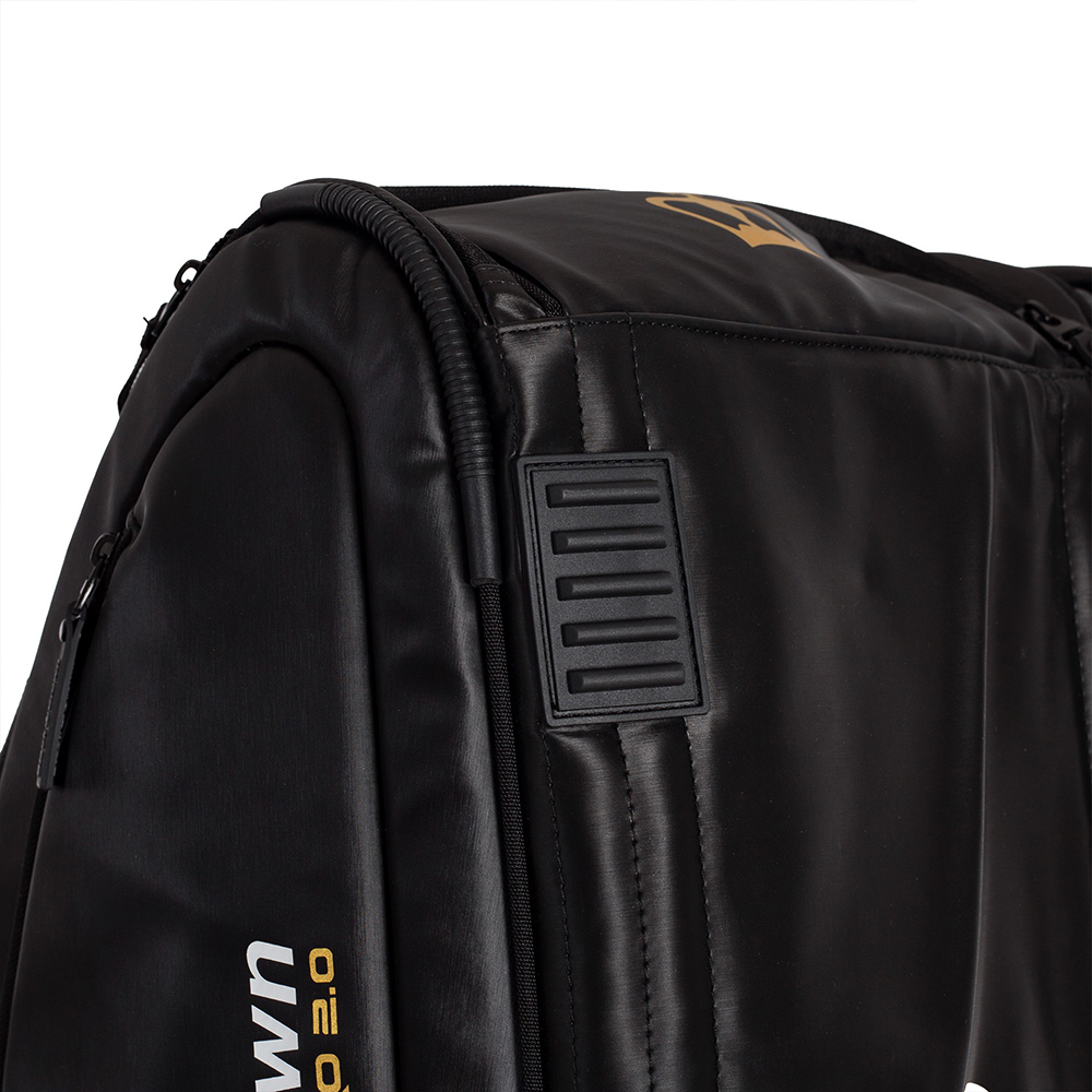 The Black Crown Ultimate Pro 2.0 racket bag is made of 100% polyurethane on the outside and 100% polyester on the inside.It combines the colours black and iridescent, or black and red; always looking for the best design for the player.
