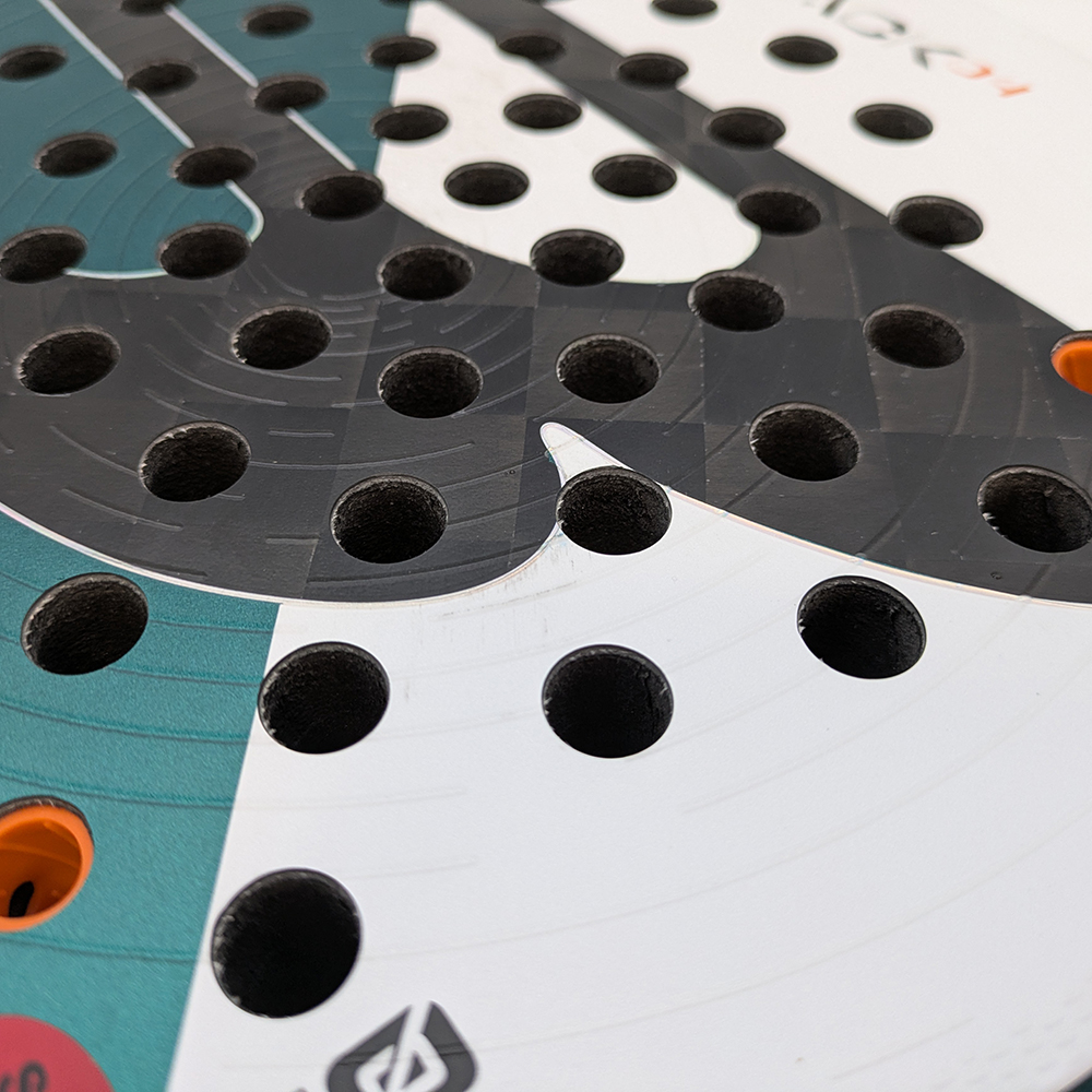 The Hack 04 racket has been designed to replace extreme power with dynamic power, which refers to the power generated by the player’s movement. This power is achieved by converting kinetic energy into precise and powerful impacts.