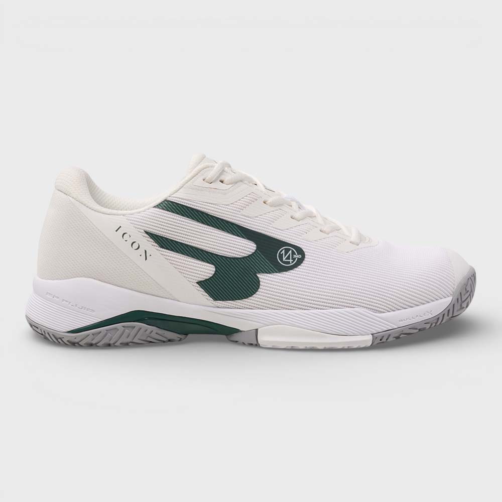 The Bullpadel Icon 26V White is the official shoe of Juan Martín Díaz, designed to deliver lightweight performance, flexibility, and elite-level stability. Its modern white aesthetic combines elegance and power, making it a standout choice on court.