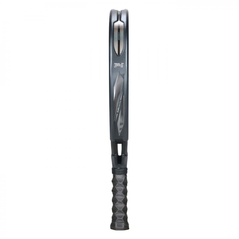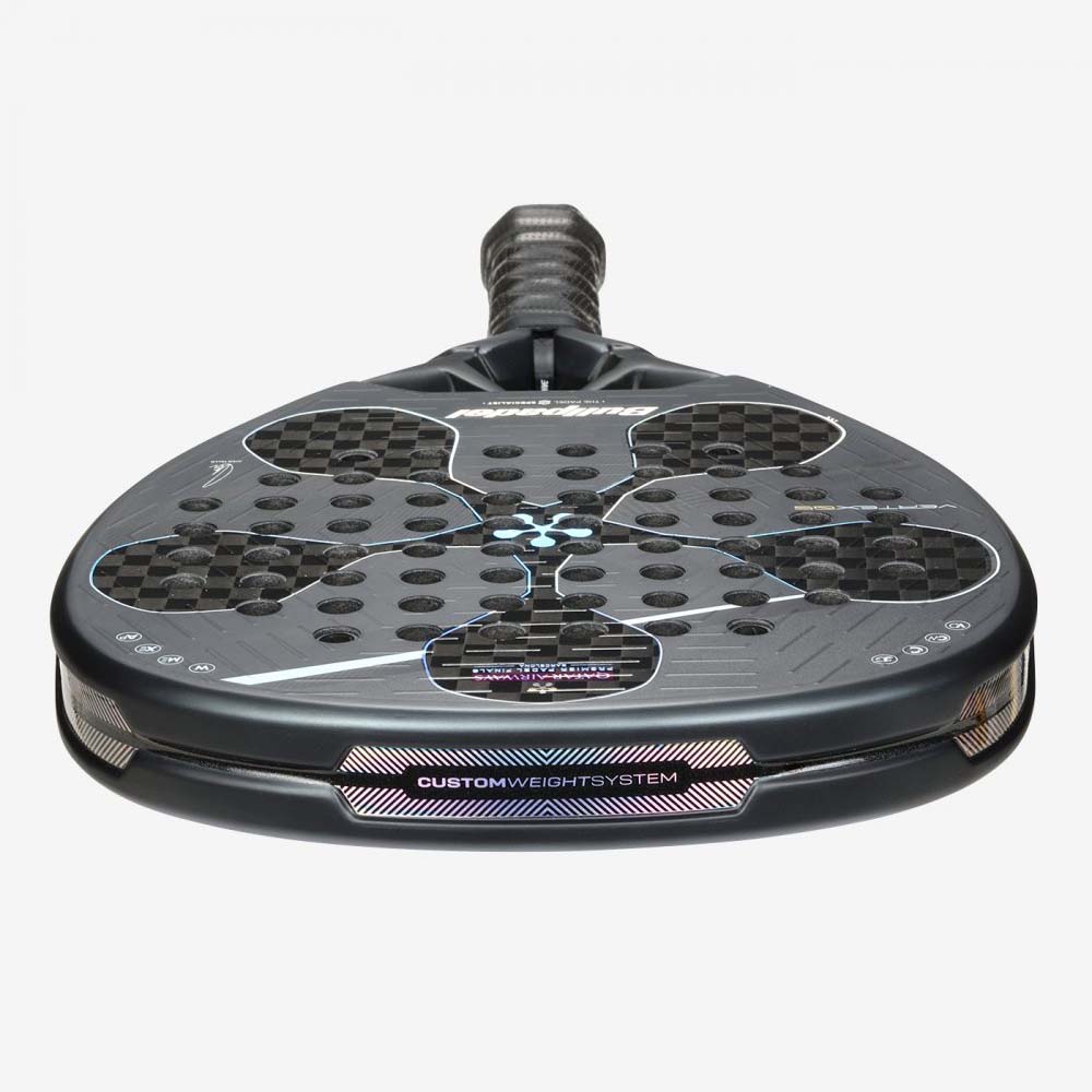 Its technical specifications include an approximate weight of 365-375 grams and a head light balance. It features a high-power Diamond shape, the exterior is composed of X-Tend Carbon 12K and the interior utilises Multieva. Key technologies integrated into the racket include Curvaktiv, Air Power, Vertex Core, Custom Weight, Top Spin (for the rough finish), Hesacore, and Vibradrive. This racket is built for professionals who arrive at the Premier Padel Final ready to prove their mastery of the game.
