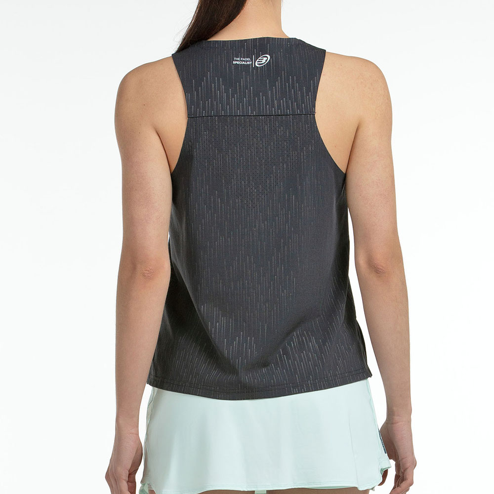 Wide fitting strapless T-shirt with crew neck. Designed in an embossed elastic nylon knit fabric. Embellished with reflective details. Made of elastic nylon single jersey, making the garment comfortable, technical and lightweight. Drylum technology is applied to the fabric which is hydrophobic and breathable. It retains little liquid and dries quickly. Ultralight fabric of polyamide microfilaments with elastane that provides great freedom of movement.