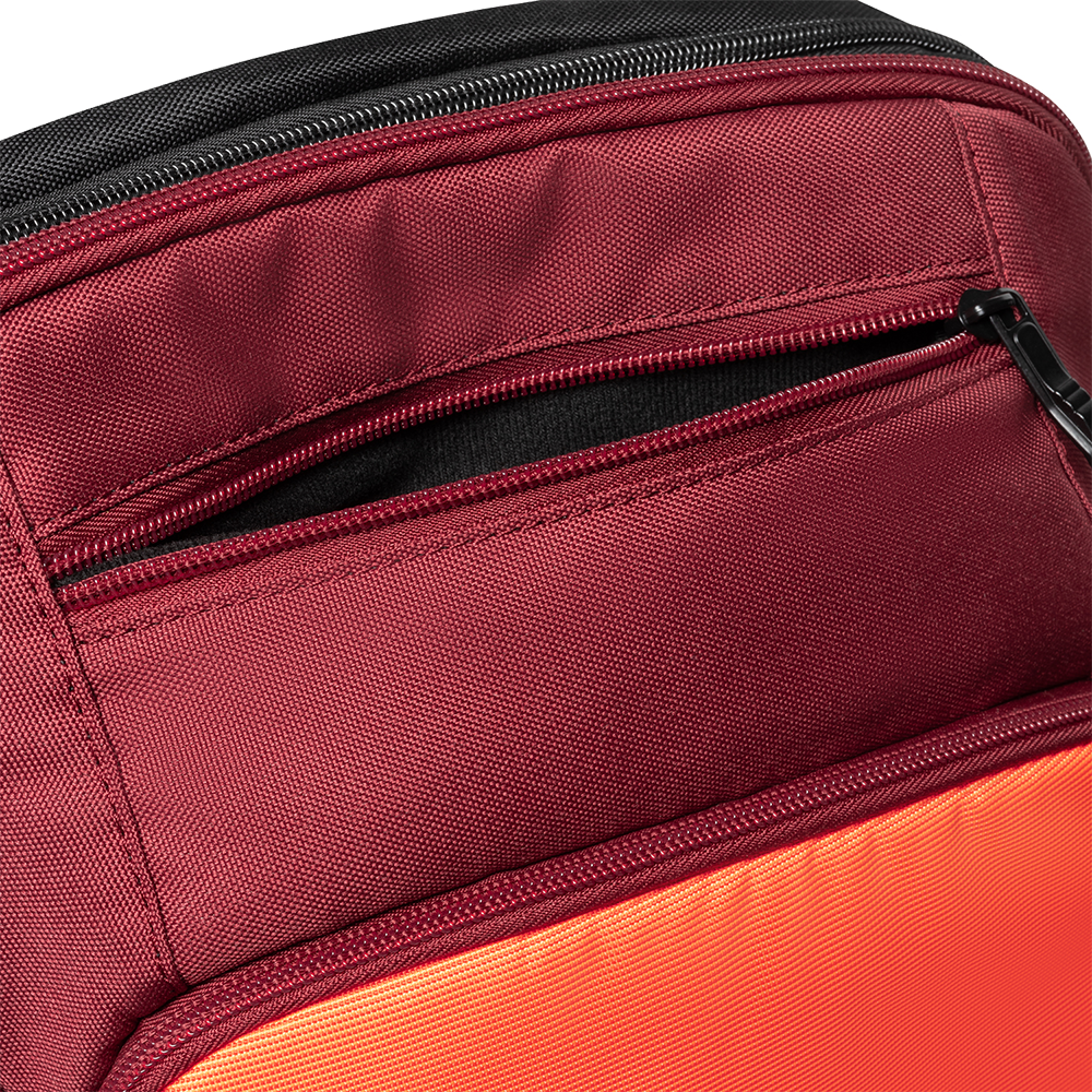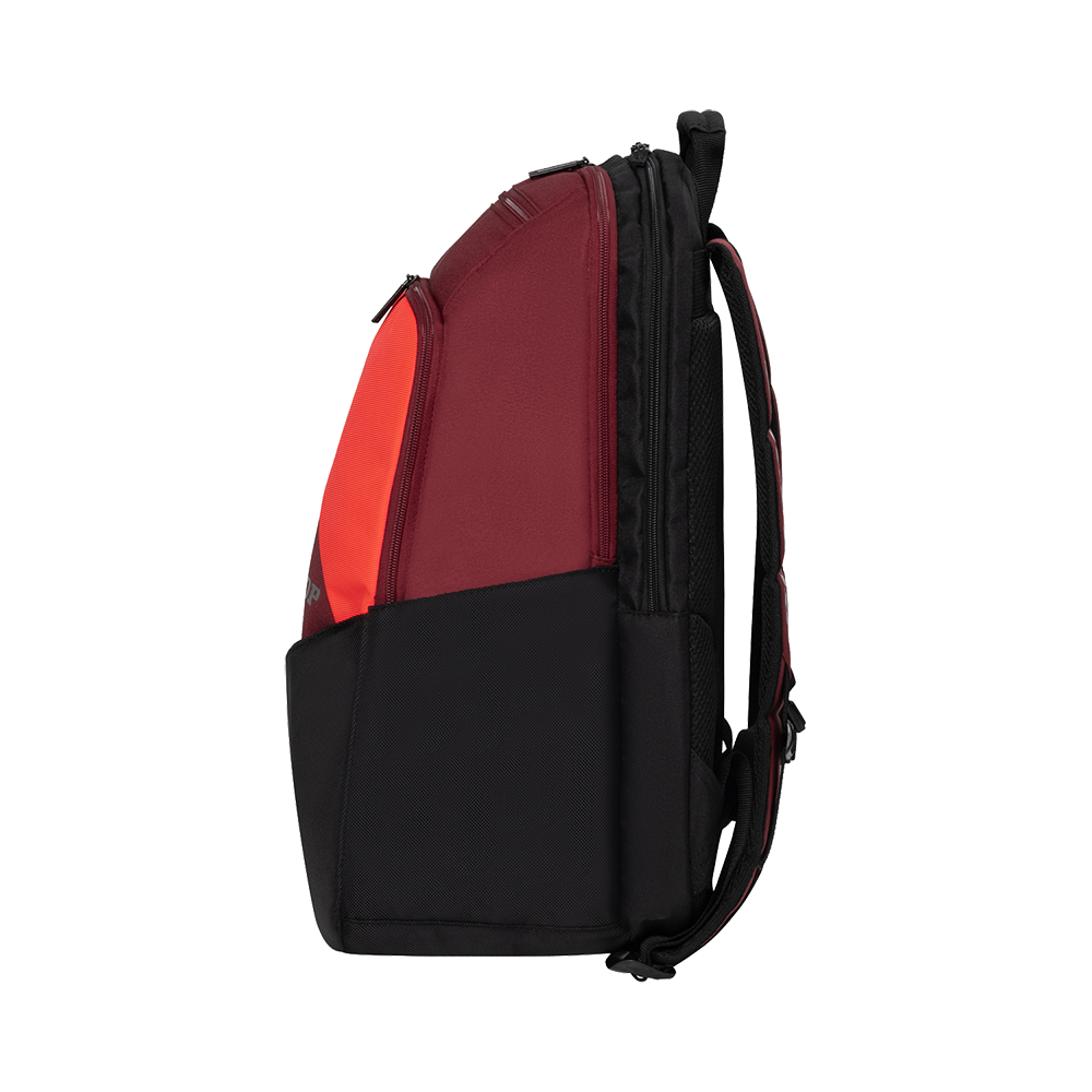 Large main compartment for clothes and shoes. Rear compartment to hold up to two rackets. Two front zipped compartments, one with integral smaller pockets for accessories. Side pocket to securely hold a water bottle or tennis ball tube. Ergonomic shoulder straps for improved comfort.