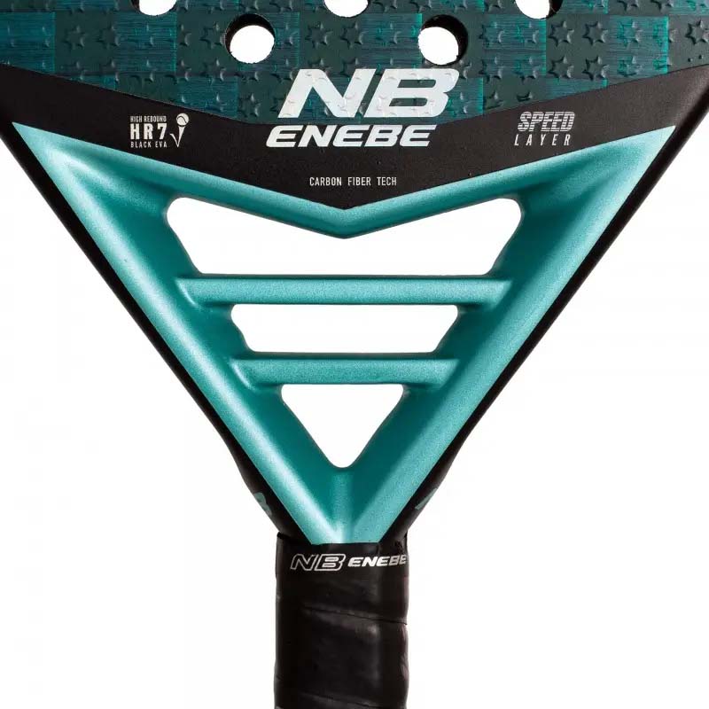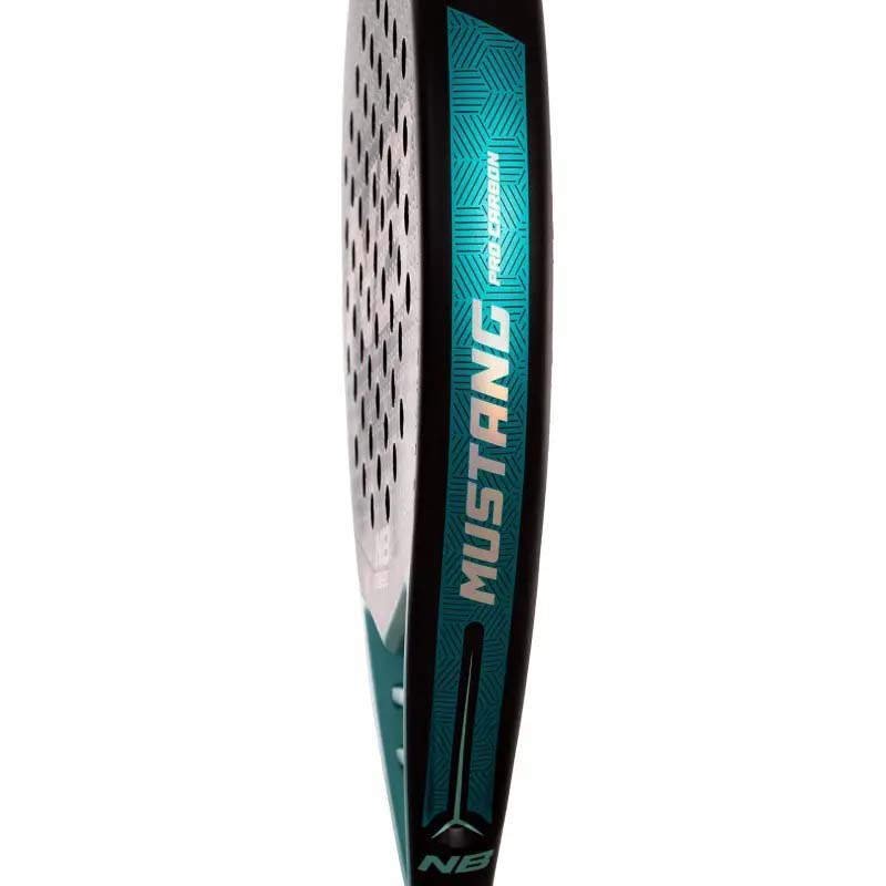 The Enebe Mustang Esmerald 15K Padel Racket (2026) is a premium edition racket designed for advanced players seeking a balance of elegance, power, and precision. It uses a successful, proven mould that provides players with the ability to maintain an aggressive offence while retaining control on defence. Structurally and visually, this racket stands out due to its exclusive materials. It features a 15K carbon surface with a distinctive emerald-coloured finish, giving it a sophisticated look and excellent structural strength. This composition makes it ideal for boosting powerful offensive shots like smashes and volleys without sacrificing manoeuvrability for defensive play at the back of the court. Additionally, its rough moulded texture improves contact and significantly increases ball spin.