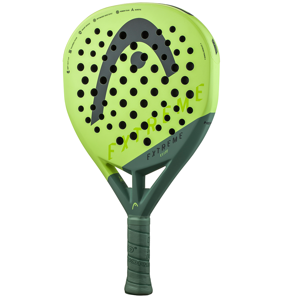 Advanced and intermediate players can experience extreme power with the EXTREME ELITE PADEL RACQUET. Head state that the Extreme Elite is the most forgiving racket in the Extreme Range with its new, diamond-shaped mold and its new Soft Butt Cap technology, which provides a softer playing feel and dampens vibrations. While the innovative Auxetic technology supplies extra power and a sensational impact feel, the fiberglass on the hitting surface delivers a soft, superior feel and even more power. The racquet is finished with an exclusive, colorful design.