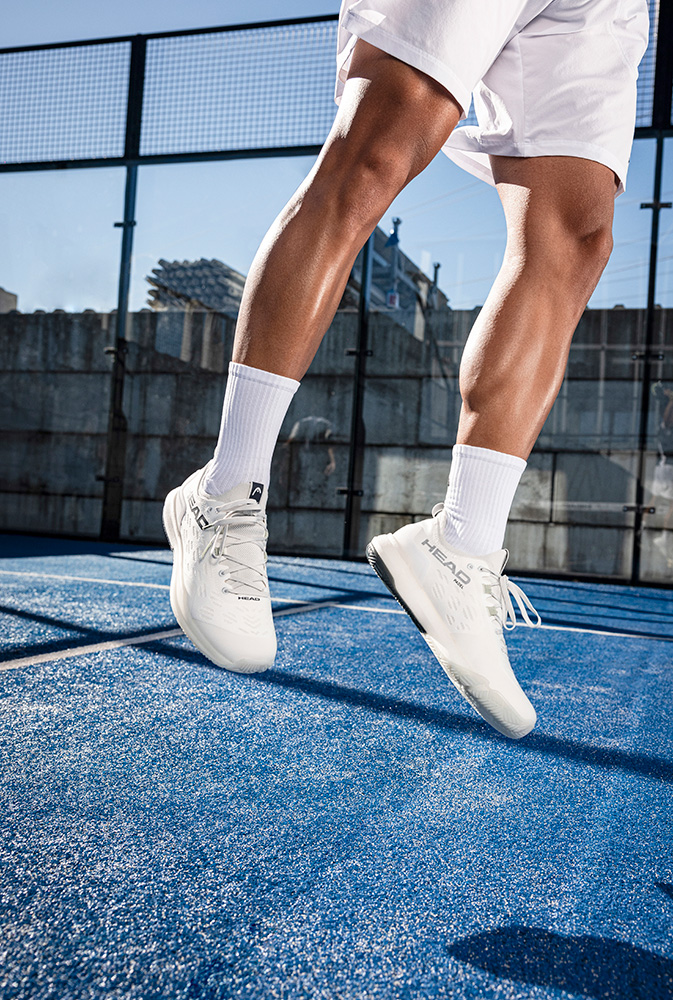 The midsole is made with lightweight, highly responsive DynaFoam, which contains small air cells. A midfoot cooling system is included for ventilation. The shoe is finished with HEAD branding that emphasises its premium, modern design.