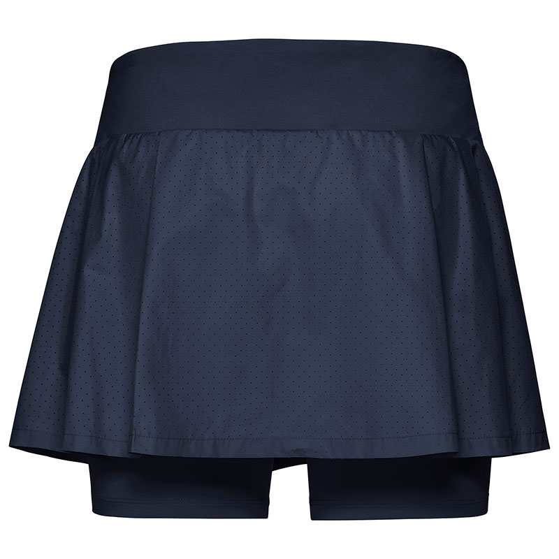 Step onto court in sophisticated style with the Head Performance Skirt. This skirt features a high elastic waistband, voluminous cut skirt with box pleats, built-in shorties, performance fabric with moisture wicking properties and UPF 50+ protection, and a Head logo at left hem.