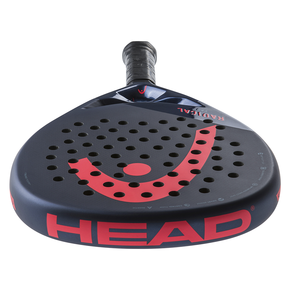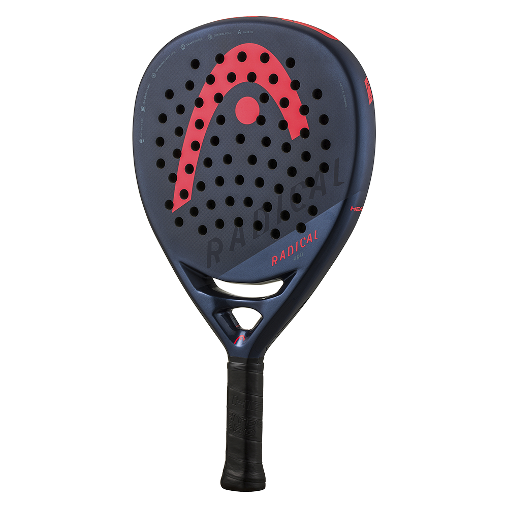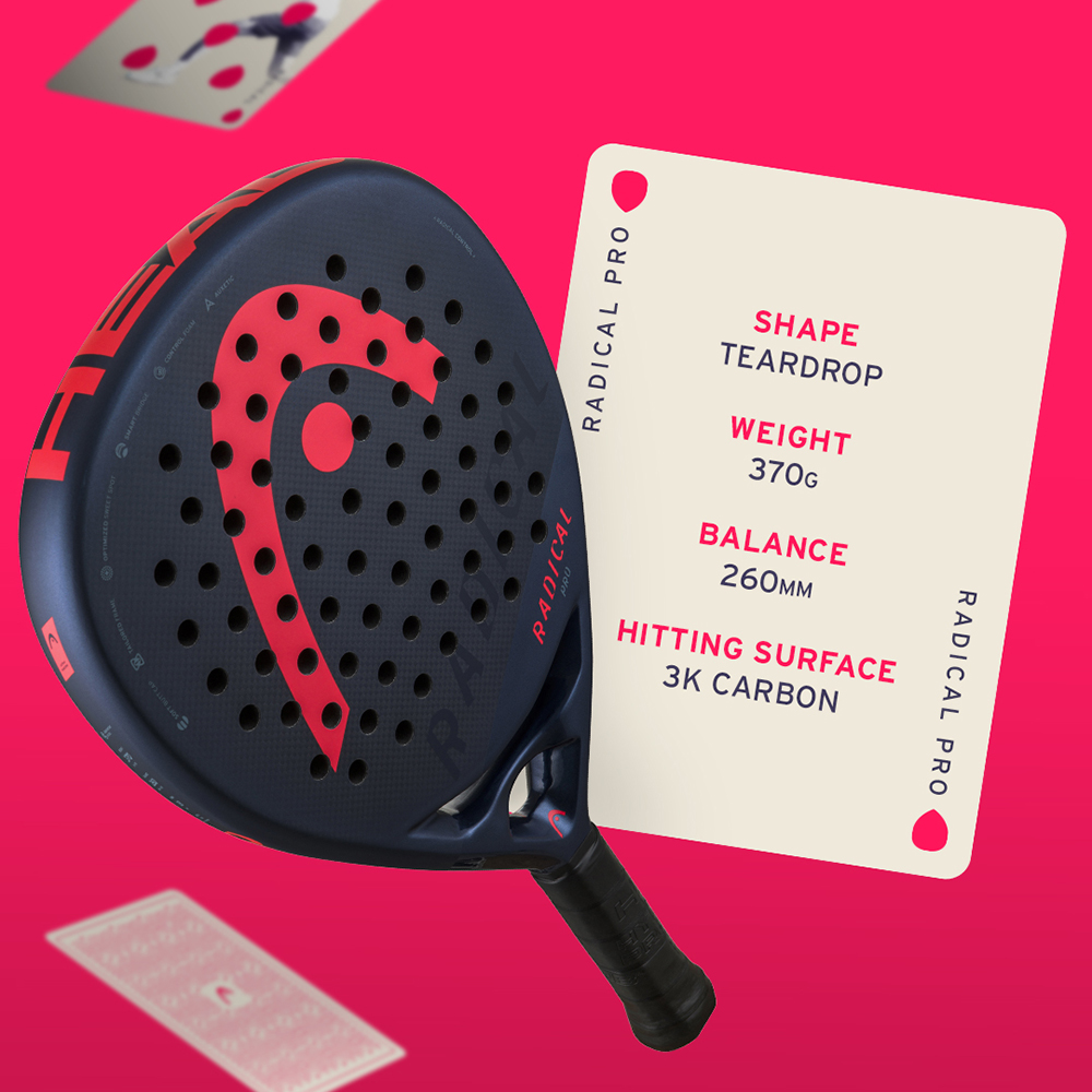 Part of the new, teardrop-shaped Radical series, the RADICAL PRO Padel Racket offers radical control for advanced and professional players. The 3K carbon hitting surface enhances control and versatility while the lower weight and balance also improve manoeuvrability. For extra power and sensational impact feel, the racquet has innovative Auxetic technology while the Soft Butt Cap technology provides a softer playing feel and dampens vibrations. The exclusive navy design has see-through carbon elements that contribute to the premium look.