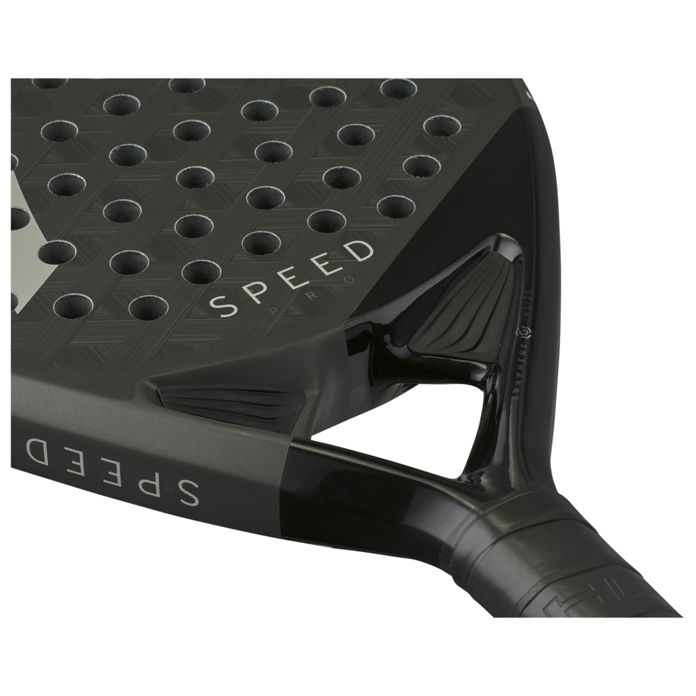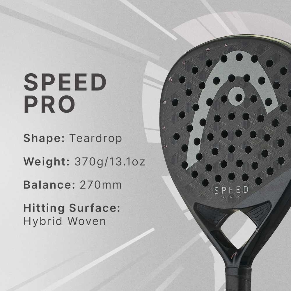 The 2025 SPEED PRO is a top-tier padel racket, crafted for competitive players seeking a balanced mix of power and control to accelerate their game. Enhanced with the cutting-edge Damp Plus technology, it effectively reduces vibrations, ensuring greater comfort and precision. This model features a unique hybrid striking surface that combines carbon fiber and glass, maximizing both durability and performance. With its updated weight and characteristics tailored for advanced play, the SPEED PRO is designed to give players the edge with its seamless blend of explosive power and refined control.