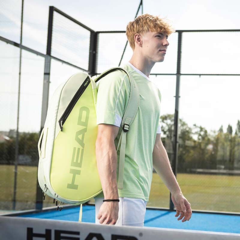 The HEAD Tour Padel Bag L has been redesigned with a new shape and a premium look. It features new padding for improved stability, new top handles, and more comfortable backpack straps. The bag has three main compartments that can hold up to seven rackets, with one compartment featuring CCT+ climate control technology to protect rackets from extreme temperatures. Other features include an integrated shoe compartment and inside and outside zipper pockets for smaller items. The bag’s packaging reflects HEAD’s focus on sustainability, with a recycled paper hangtag and a recycled plastic bag.