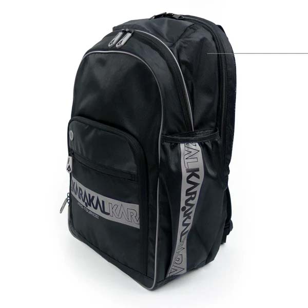 The Karakal Pro Tour 30 Backpack is an excellent companion to any of the Karakal racket bag range, offering a generous 30-liter capacity. It’s a convenient “grab and go” backpack with double shoulder straps. The bag features a top racket pocket, a front wet/dry compartment, a soft pocket for valuables, a side pocket for a drinks bottle, and an elasticated stash pocket. There is also a large central kit pocket and a front zip pocket for additional storage. The backpack measures 500mm x 300mm x 200mm and is available in black with grey trim.