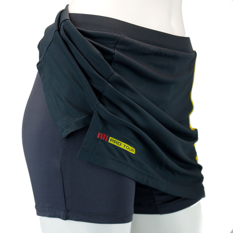 Worn by Karakal players on the PSA World Squash Tour the Karakal Pro Tour Lady Skort has an A line skirt for ease of movement and a fitted inner pant for comfort.