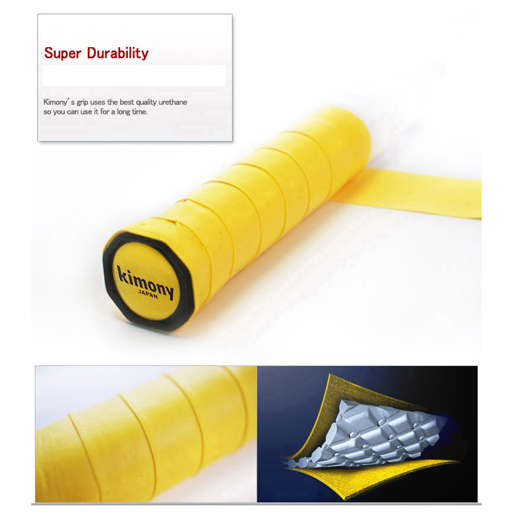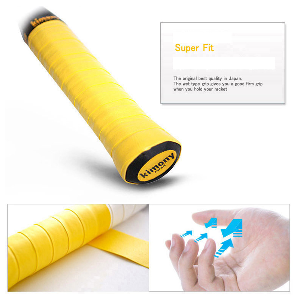 Kimony HI-Soft EX Grip Tape (12 Pack) The original Kimony grip. Kimony Hi-Soft grips are a wet type grip with good absorption and a tacky feel created with the best polyurethane to give extended durability. Choose from a plethora of colours including: Black, Blue, Fluoro Green, Fluoro Pink, Fluoro Sky, Fluoro Yellow, Navy, Orange, Red, Teal Green, Violet, White and Yellow. Measurements: 0.5mm x 12pcs.