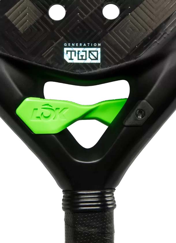 Key Technical Features: – Elite Construction: Built with C18 Carbon and Memory EVA rubber, the highest-tier material combination in the LÕK range, designed for maximum energy return and explosive power. – Asymmetric Heart EVO: A reinforced bridge structure that increases rigidity and stability while effectively absorbing vibrations. – The Green Centre Piece: A unique innovation in the heart of the racket that aids in structural stability and is designed to be used as a bottle opener for post-match social sessions. – Advanced Mechanics: Features the Dynamic Holes System for improved ball output and 3D Spin Lines to maximise ball rotation and tactical control. – Durability & Comfort: Includes strategic carbon reinforcements to prolong the racket’s life and a comfy wristband for a premium feel.