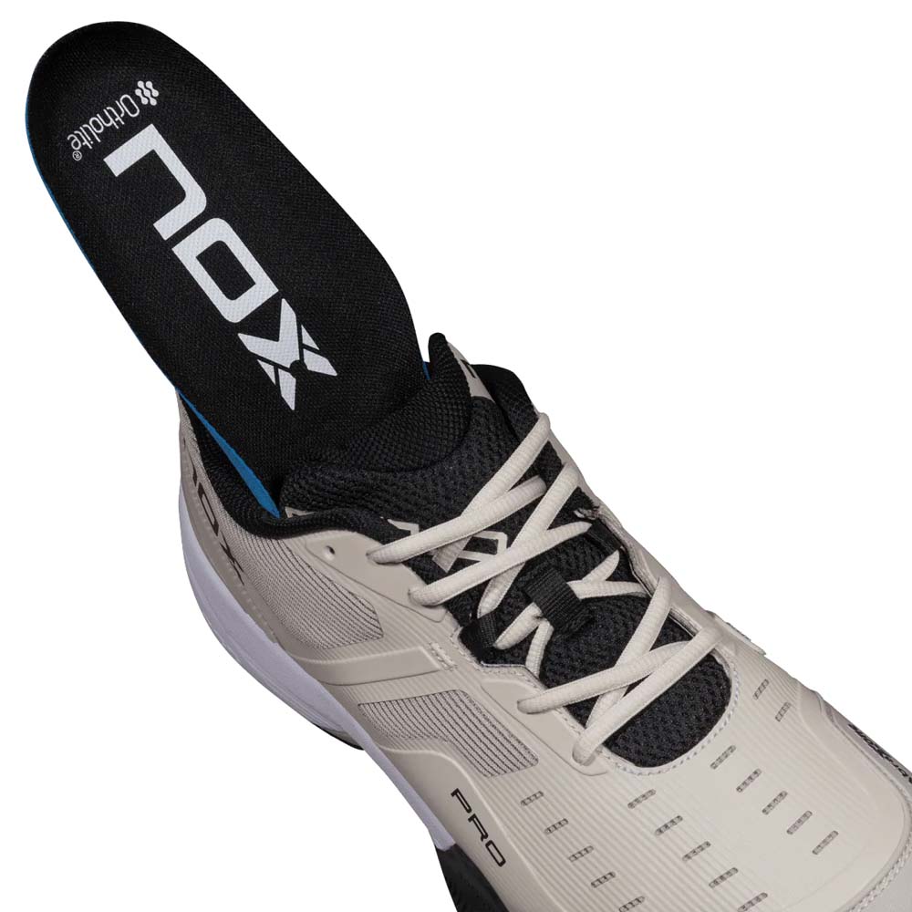 The Nox AT10 PRO is a high-performance padel shoe that combines a modern, exclusive aesthetic with explosive responsiveness. This model focuses on providing a secure feel for players who demand stability during intense, high-speed movements.