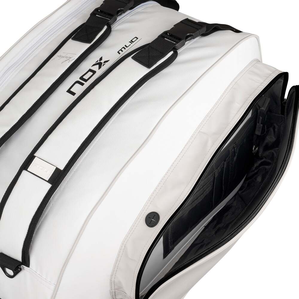 Discover the new TEAM paddle bags made with high quality materials and a completely renewed design. The ML10 model has been specifically designed for the renowned charismatic player: the Canoso de BahÃa Blanca, Miguel Lamperti. blue. The Team racquet bag is designed so that you can take everything you need to your matches and tournaments with the greatest style. In white gray Color .
