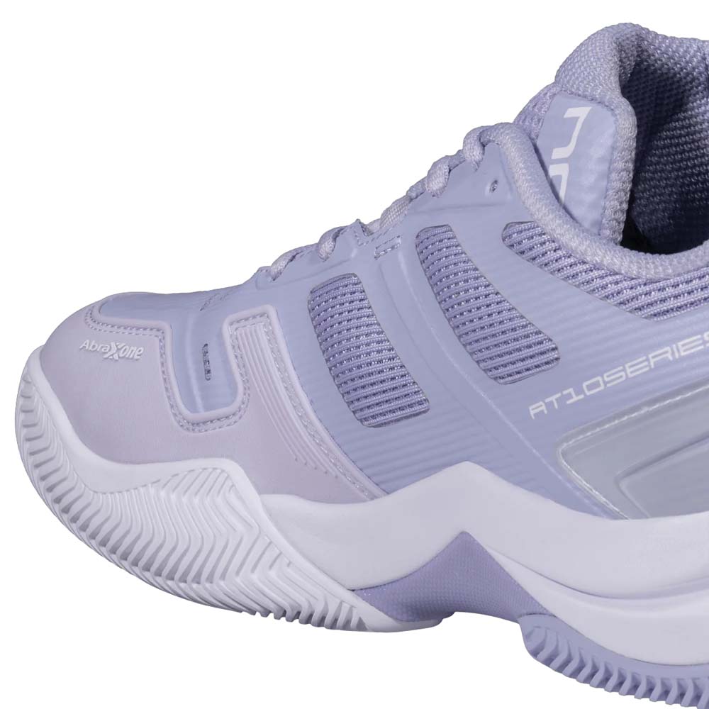 Core Stability & Injury Prevention – Advanced Gravity Geometry (AGG): An elevated heel drop that reduces calf strain and primes the player for explosive sprints. – Lateral Support: An expanded sole surface area designed to prevent ankle rolling during intense side-to-side rallies. – Internal AbraXone Reinforcement: Increases lateral stability and protects the shoe from premature wear.