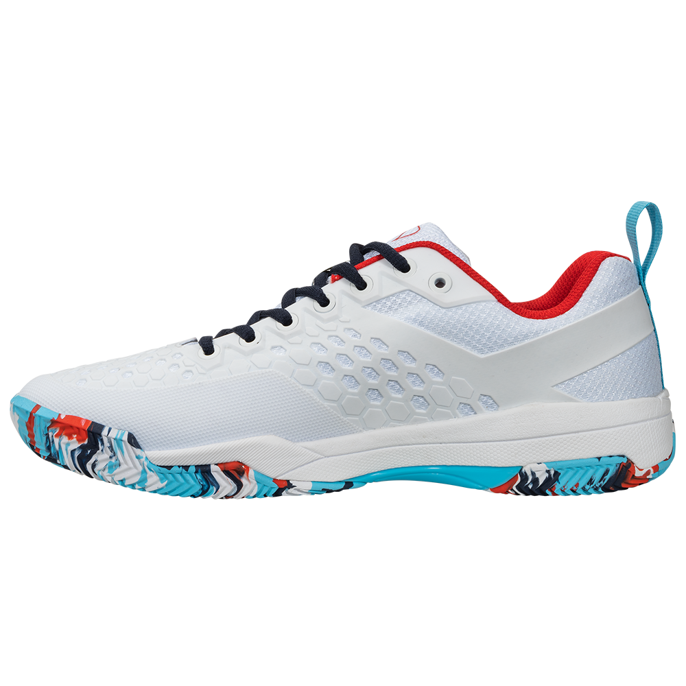 The newly improved Rebel padel shoe is a flexible and lightweight shoe designed to provide the player with stability, support, and excellent grip on court.Stand out on court with the best performance yet, all thanks to the following features.+ Superior grip with a herringbone sole+ Designed with Salming´s TGS 62/75 guide system to stimulate the foot’s natural movements+ Patented D3O insert a high-performance shock reduction material+ LMS+™ Torsion unit adds more stability to prevent twisting your ankles+ Removable EVA insole+ Reinforced lace construction+ Moulded TPU heel counter for added stability
