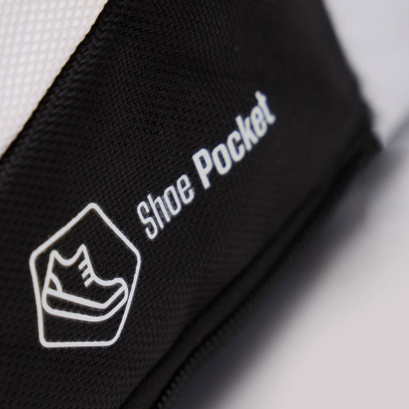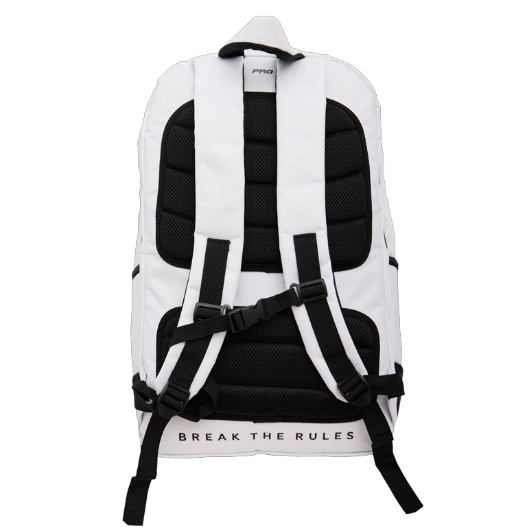 The Starvie White Sport backpack is a modern and functional backpack with a sporty white design and black and gold details. It offers a large storage capacity for padel equipment and personal items. The backpack includes a separate shoe compartment, reinforced handles for durability, and a padded laptop section. It is made of Polyester and has dimensions of 50 x 32 x 18.5 cm.