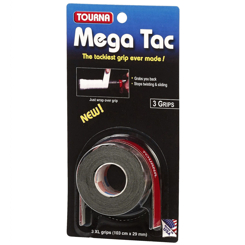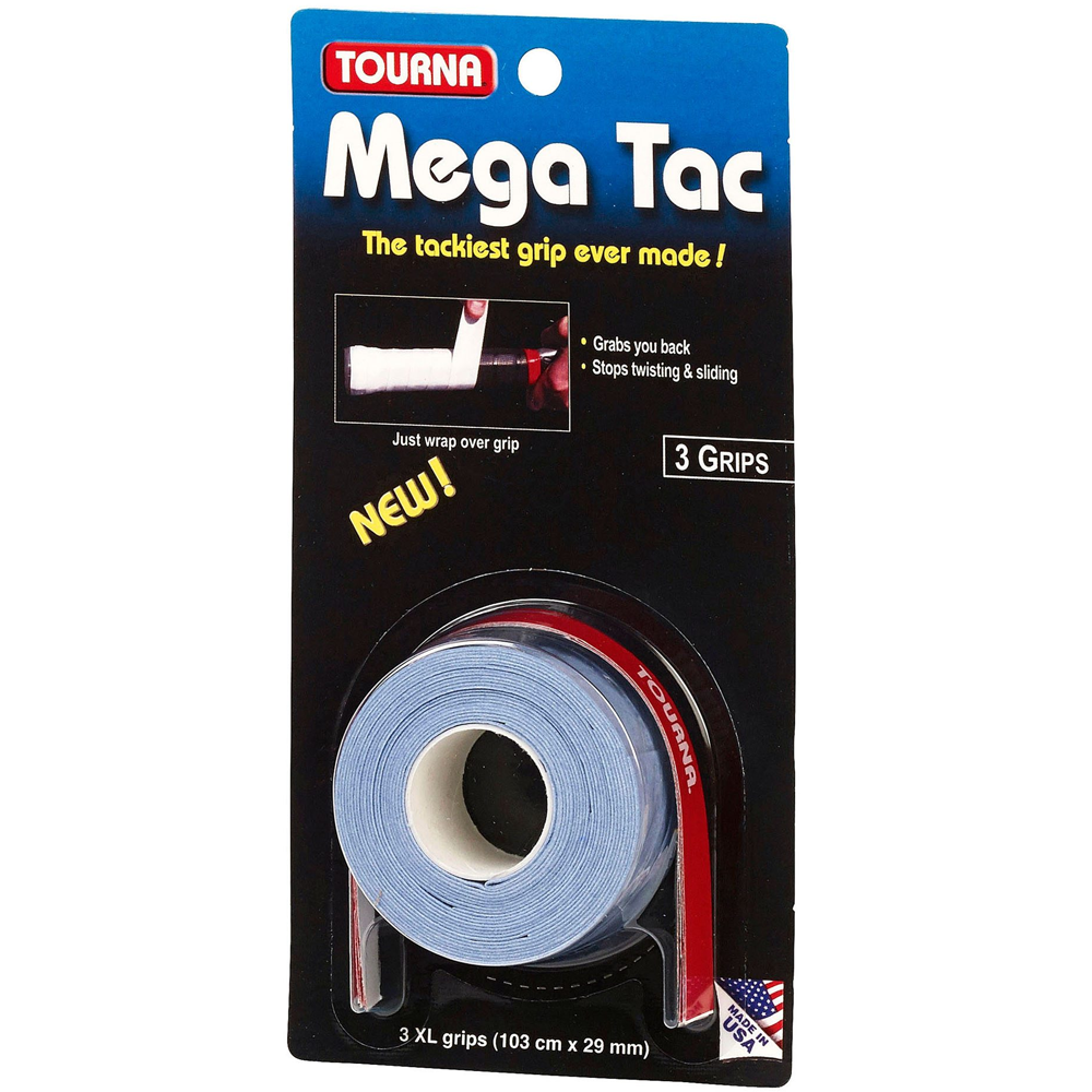 Tourna Grip Mega Tac Overgrip (3 roll) Tacky, sticky, wet feel. Non slip and absorbs moisture.
