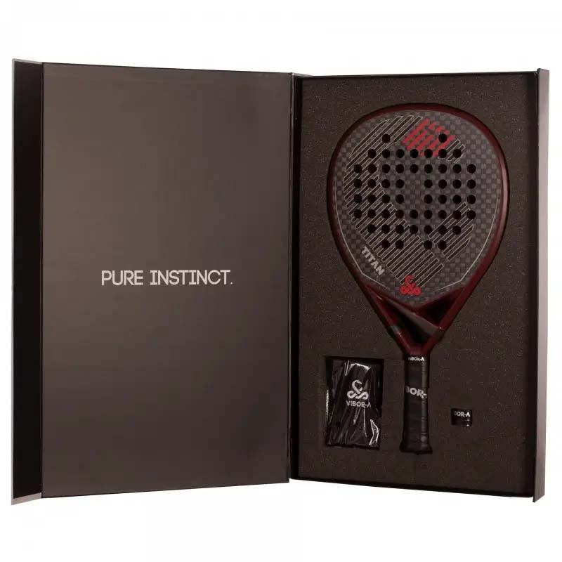 This pack includes the Vibor-A Titan 12K Red Padel itself, a Vibor-A wristband and a Vibor-A overgrip (overgrip colour may vary).
