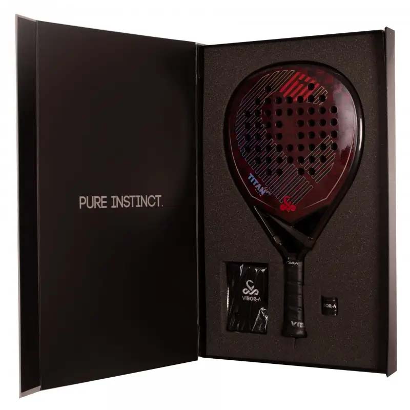 This pack includes the Vibor-A Titan Black Light Padel itself, a Vibor-A wristband and a Vibor-A overgrip (overgrip colour may vary).