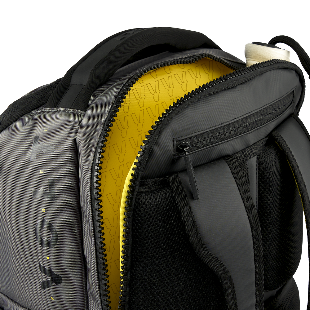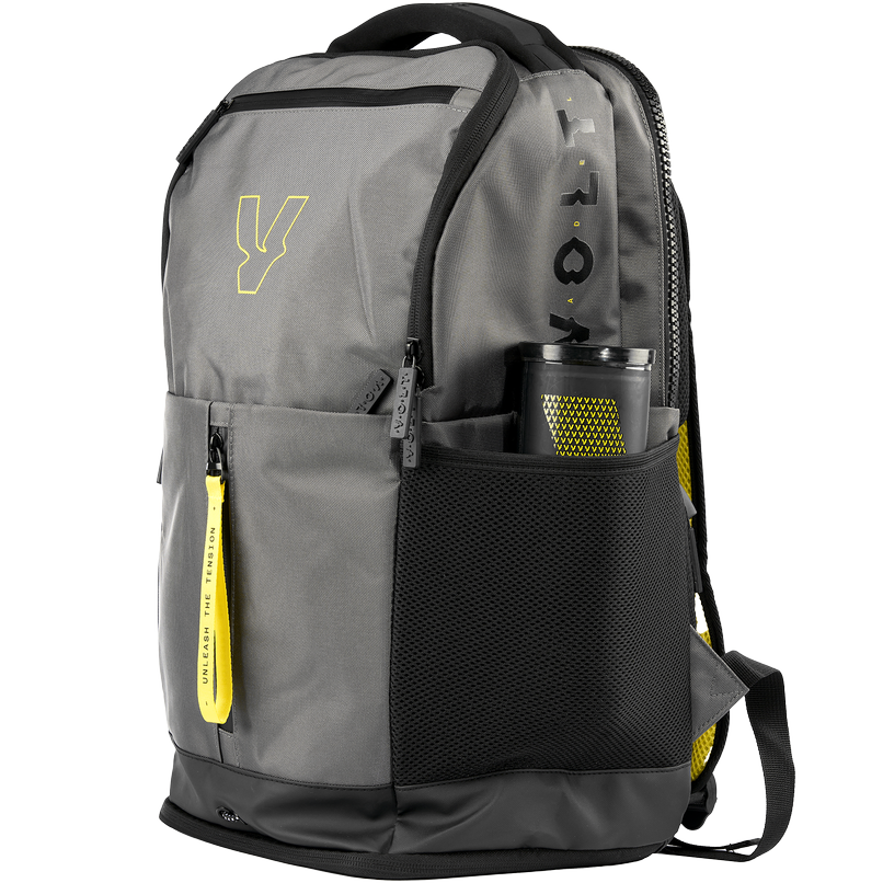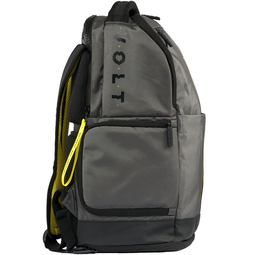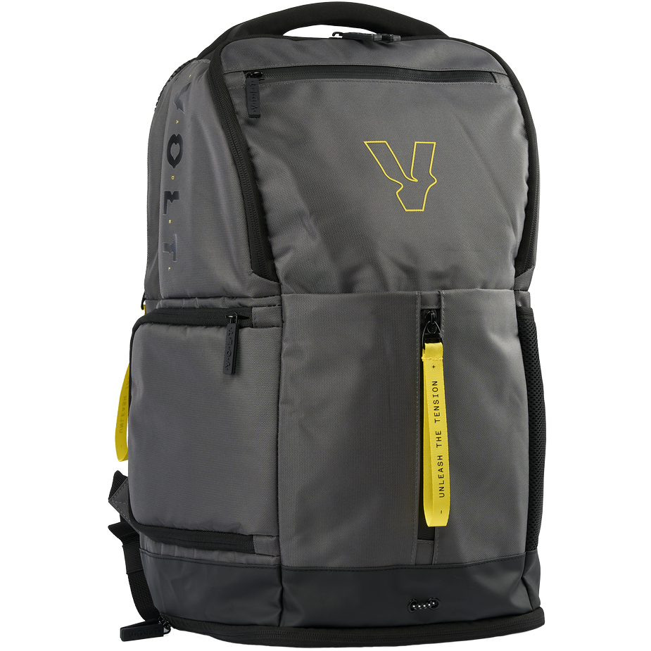 Top quality backpack with great space, comfort and style. Volt’s XL grey backpack was designed to carry rackets and all the equipment you need, with a separate pocket to carry 2 rackets safely and a very spacious central compartment. Bottom pocket for shoes and various compartments and pockets for smaller items such as cell phones and keys. Side pocket to carry a can of balls or a bottle